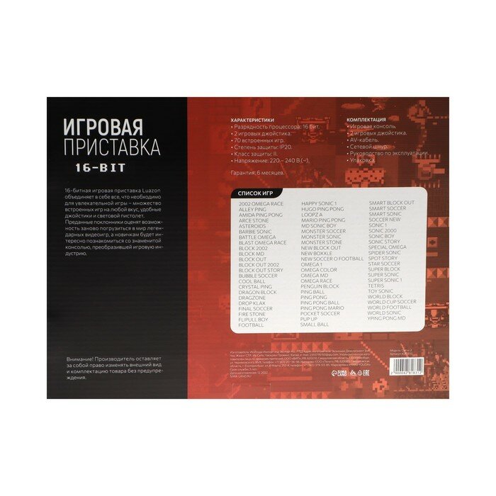 Игровая приставка Luazon Game-2, 16 бит, в комплекте два джойстика, 70 игр, чёрная интересное: