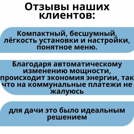 | Особенности | воздухоотводчик, встроенный расширительный бак, встроенный циркуляционный насос, манометр, предохранительный клапан, разъем для подключения внешнего управления, термометр, фильтр для воды |