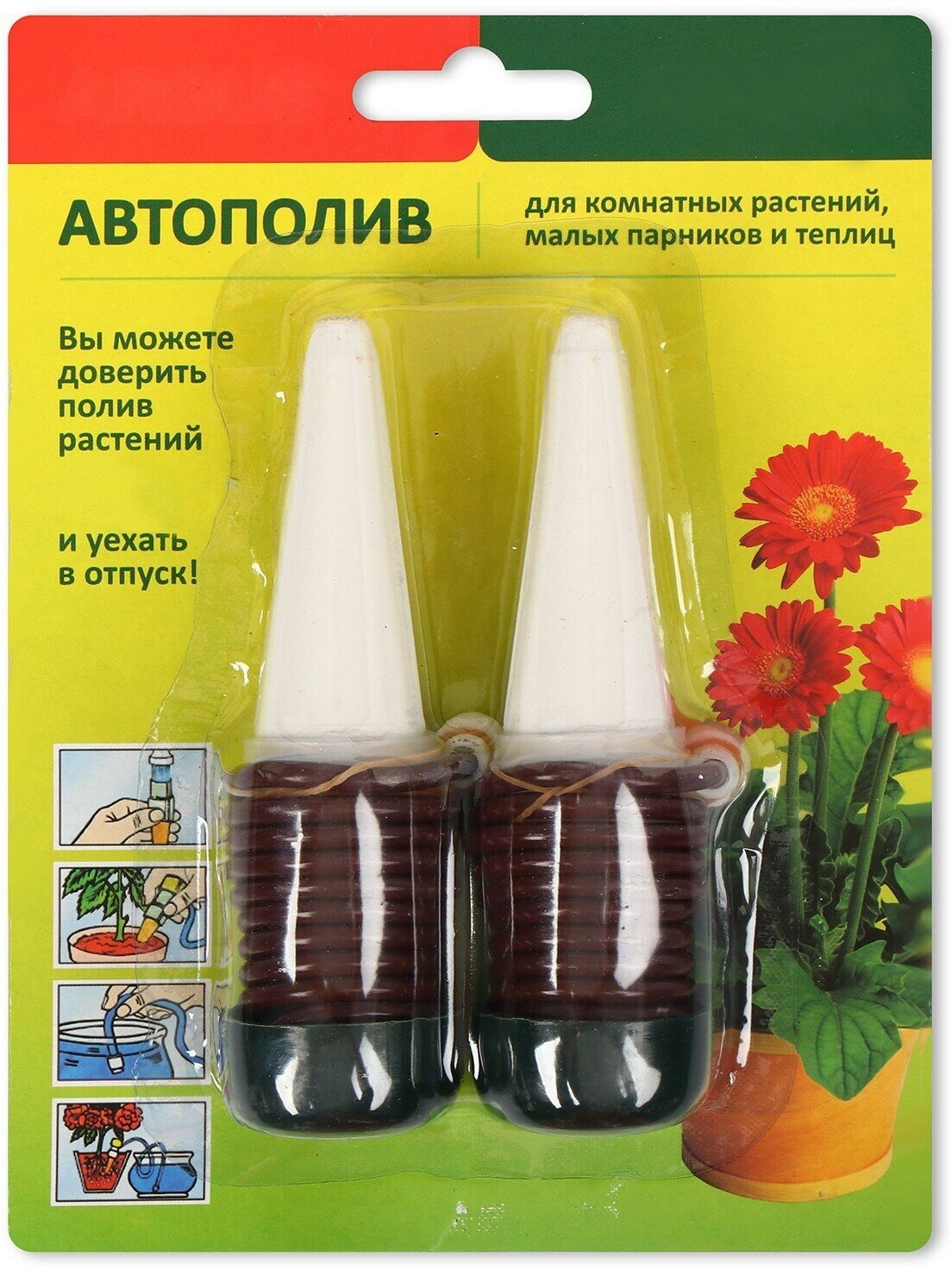 Автополив для комнатных растений, малых парников и теплиц, шланг 1 м, пластиковый, высота 14 см, 2 шт.
