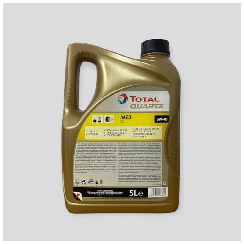 Купить TOTALENERGIES 213790 Масло моторное синтетическое 5л - QUARTZ INEO C3 5W-40, ACEA C3, API SN/CF, MB 229.51, GM Dexos 2, Porsche A40, VW 505.00/505.01, FIAT 9.55535-S2, OV 040 1547 - D40
