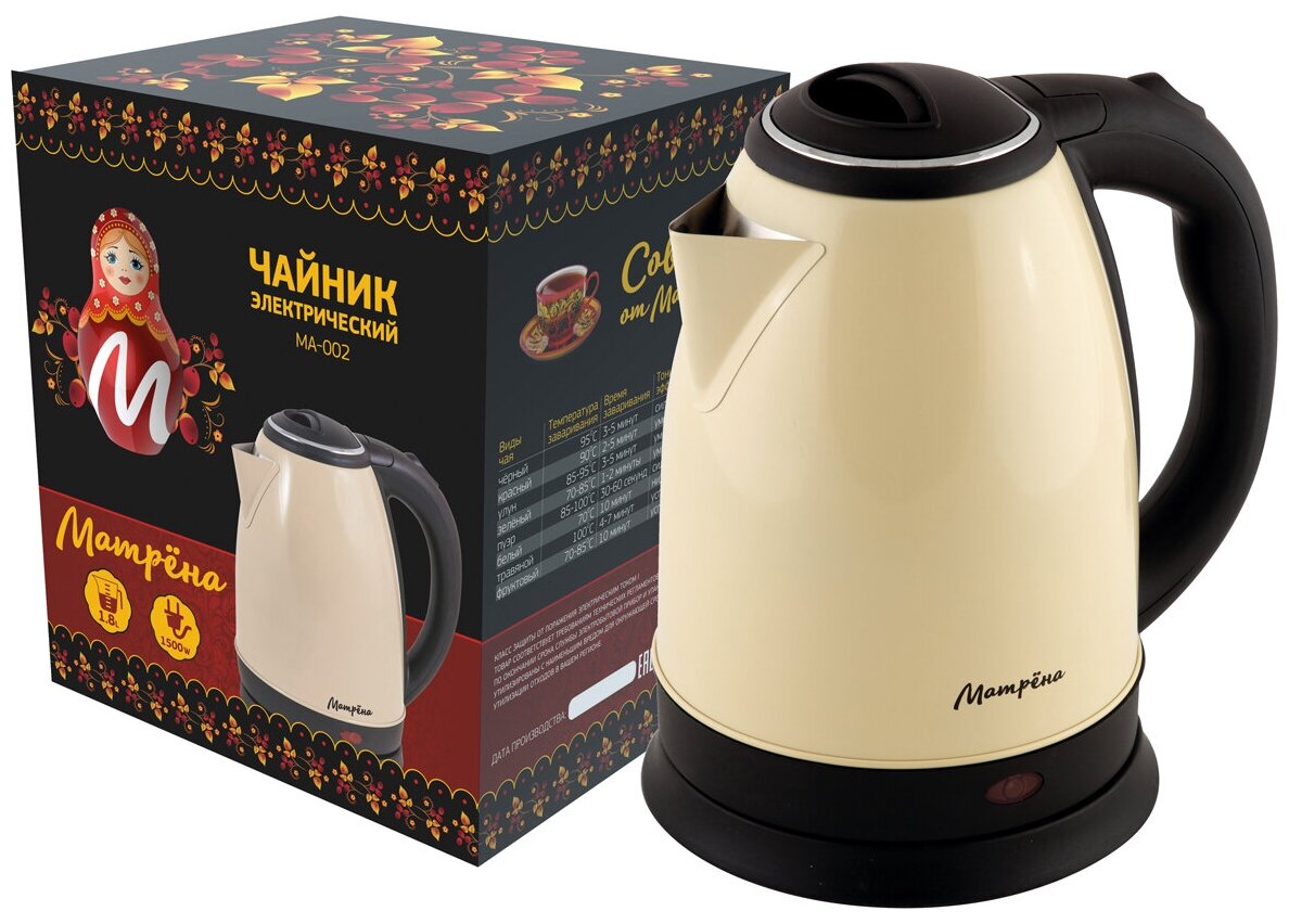 СохранитьЧайник MA-002 электрический (1,8 л) стальной бежевый матрёна 006746 (Артикул: 4100013495) интересное: