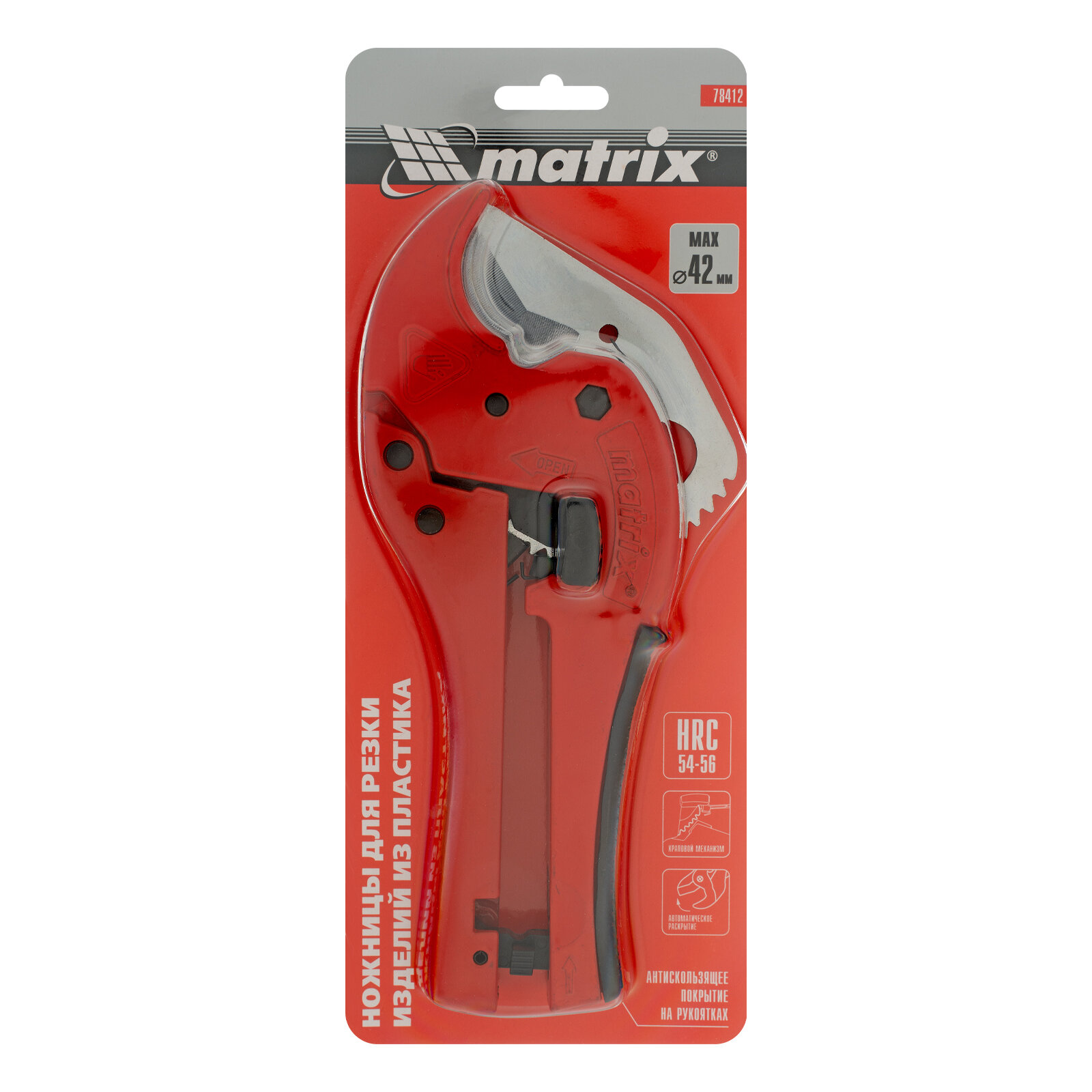 MATRIX Ножницы для резки изд.из ПВХ,D- до 42 мм,обрезин.опорная рук-ка,порошковое покр-ие рукояток 78412