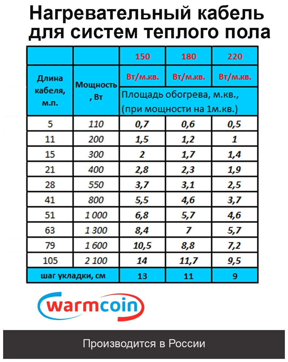 Теплый пол кабель Warmcoin POWER 1300 Вт / ~63 м интересное: