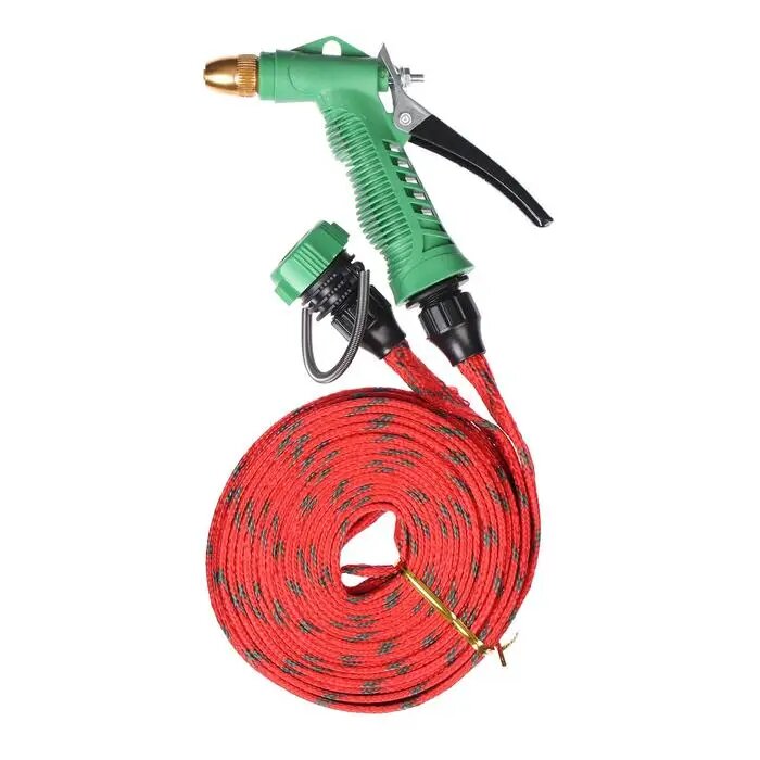 Шланг поливочный резиновый, 12 мм, 10 м, в текстильной оплётке, с поливочным пистолетом, цвет микс
