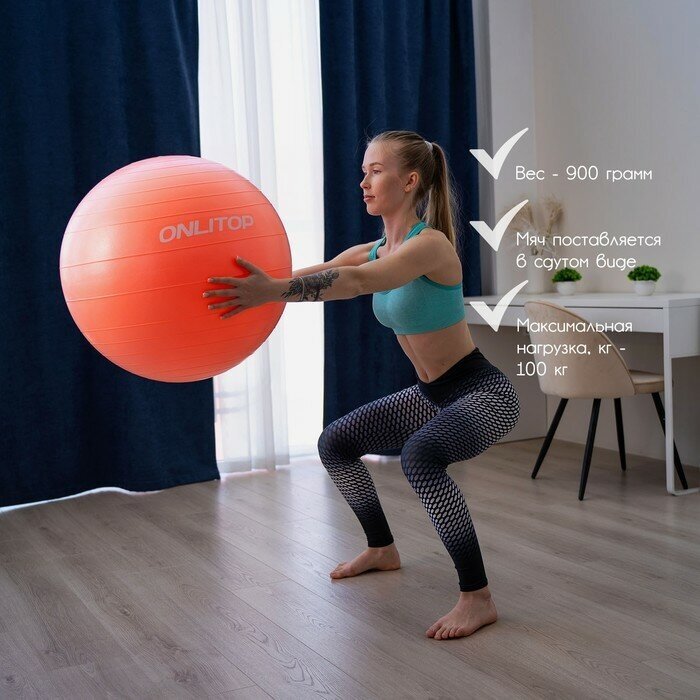 Фитбол ONLYTOP, d=65 см, 900 г, антивзрыв, цвет оранжевый интересное: