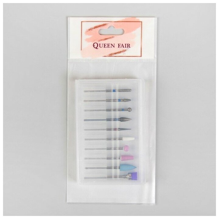 Купить Queen fair Фрезы для маникюра в пластиковом органайзере, 10 шт