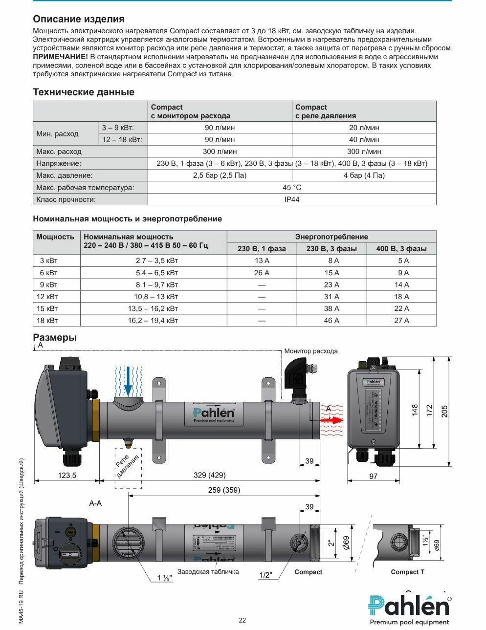 Электронагреватель Pahlen (12 кВт) с датчиком потока (132611 / 13981412), цена - за 1 шт интересное: