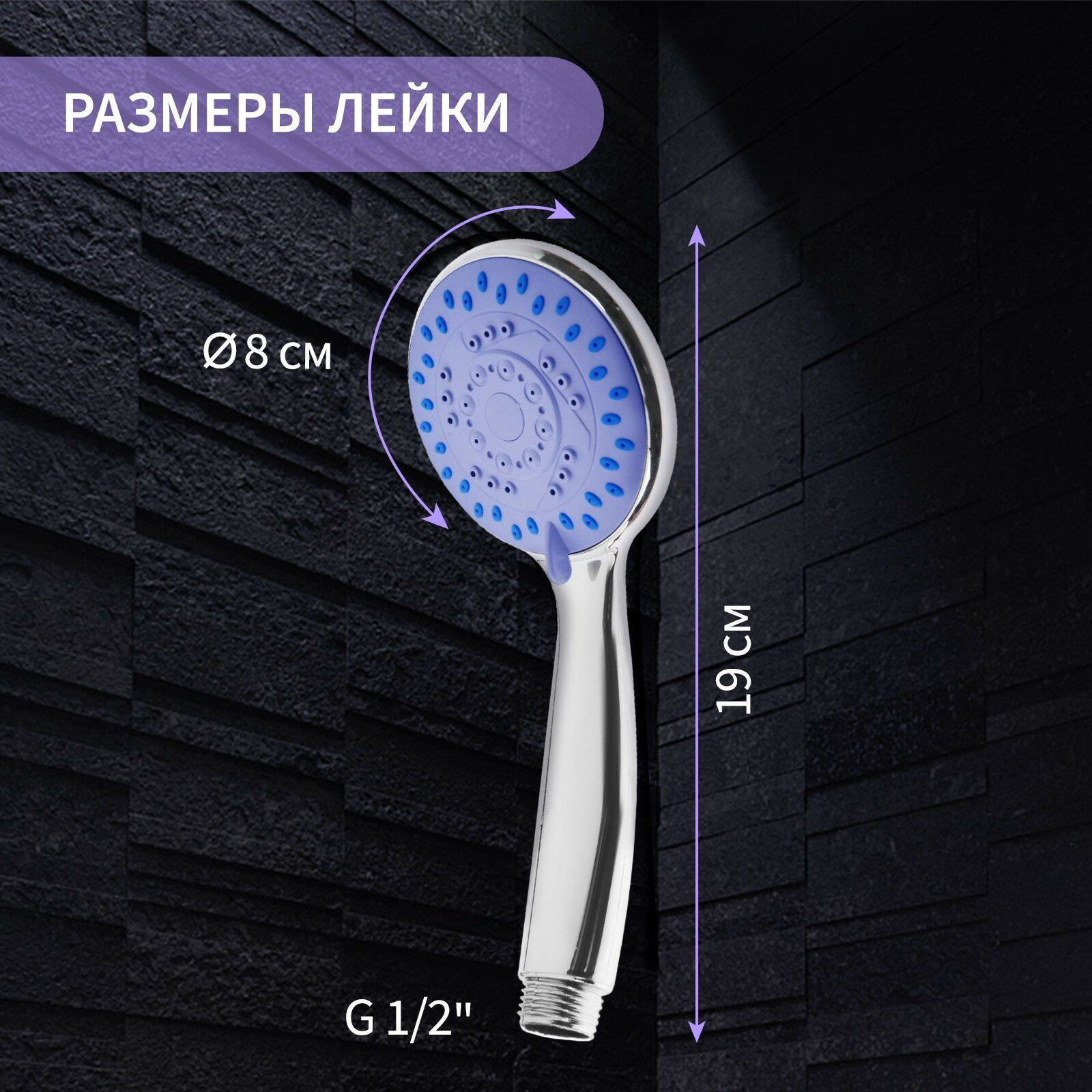 Лейка для душа ZEIN Z4087, микроточки, кнопка "стоп", вентилятор, спираль, фиолетовый/хром