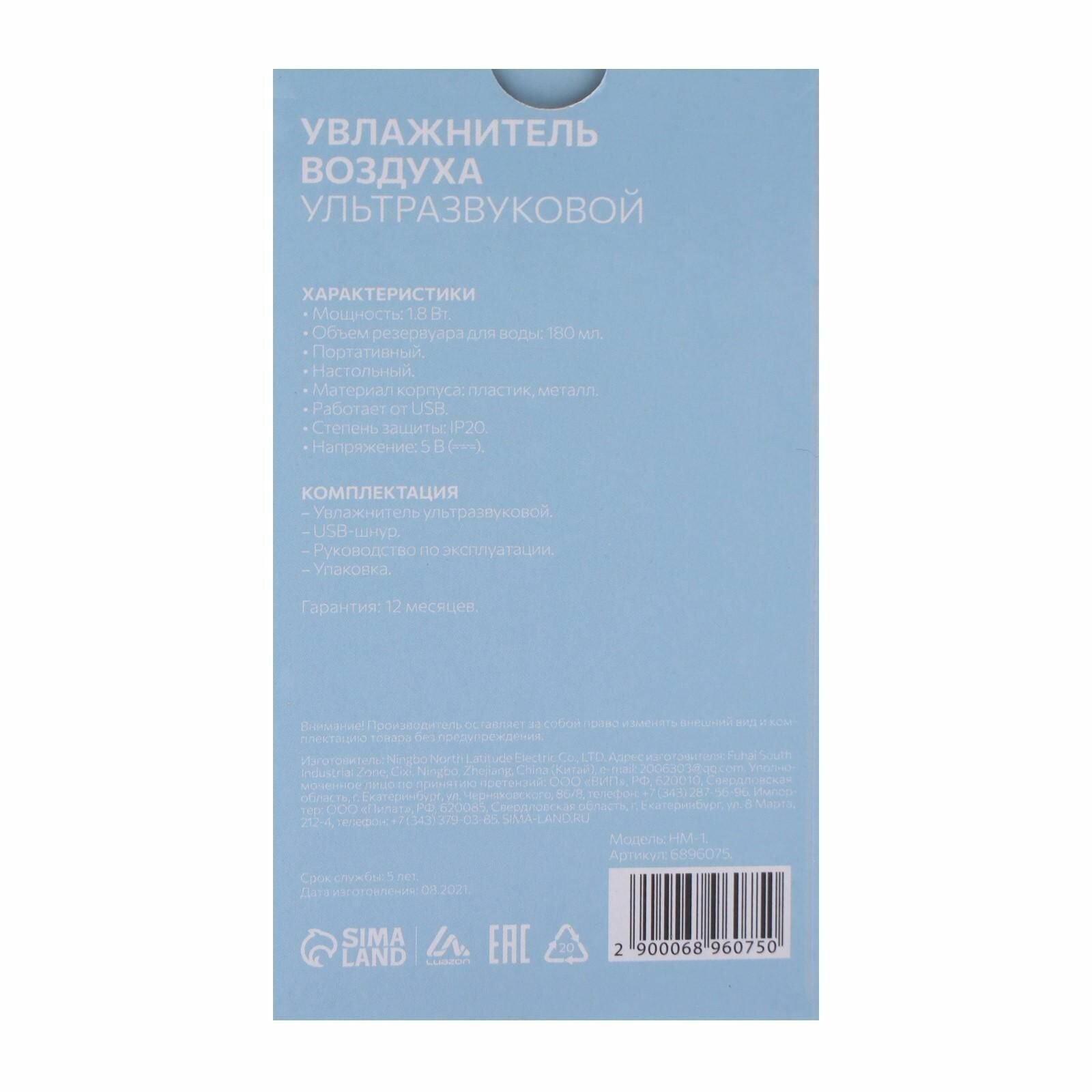 Luazon Home Увлажнитель воздуха Luazon HM-1, ультразвуковой, 180 мл, 1.8 Вт, портативный, серый интересное: