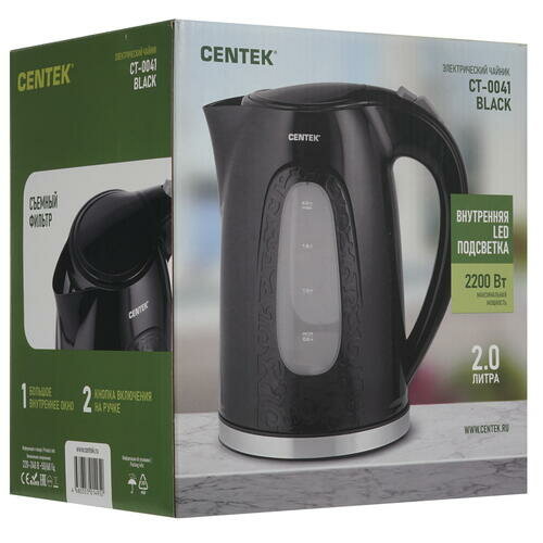 Чайник CENTEK CT-0041 черный 2200Вт, 2.0л, подсветка
