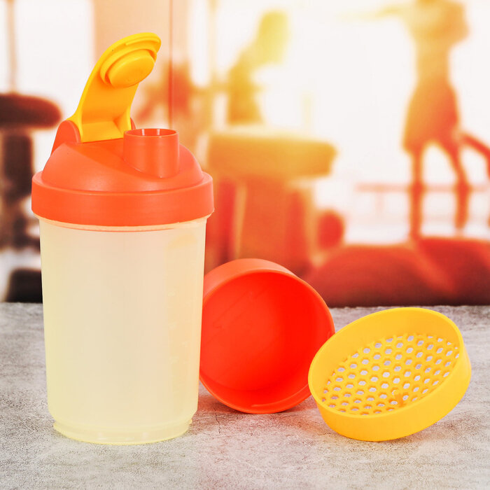 RAYDAY Шейкер спортивный с чашей под протеин, бело-оранжевый, 500 мл