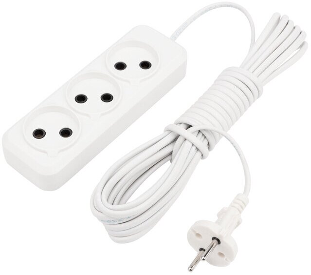 Удлинитель REXANT 3 гнезда, 7 м, 2х0.75 мм², б/з, белый (Сделано в России) Артикул 11-8736