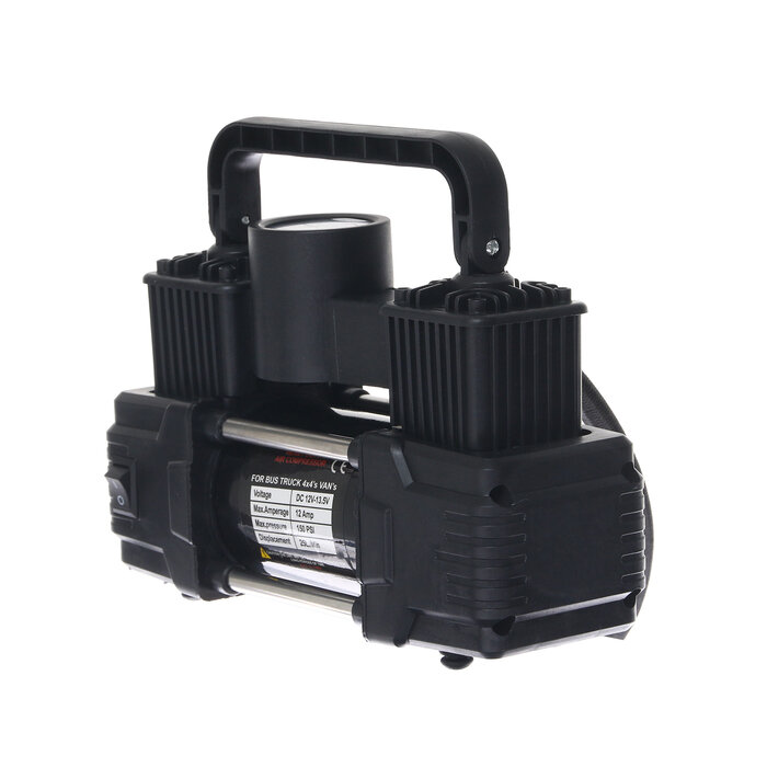 Компрессор автомобильный КНР двухпоршневой, в сумке, 12В, фонарь, 60 л/мин, черный