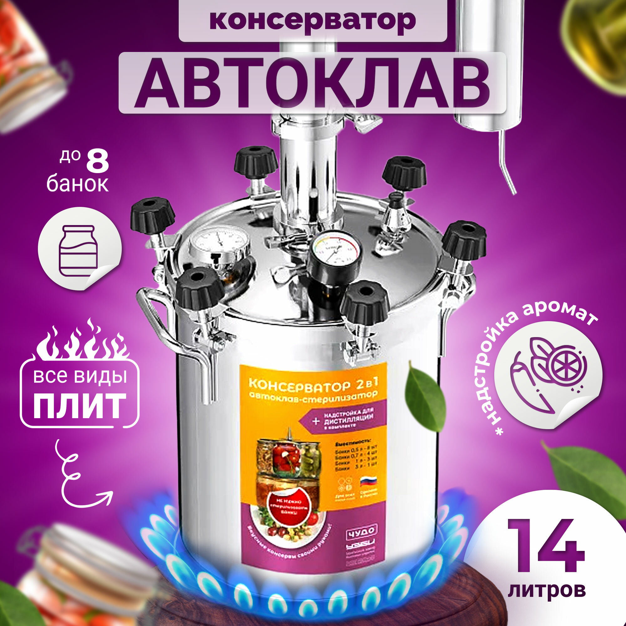 Автоклав для консервирования Консерватор 2 в 1 Аромат, нержавейка,14 литров интересное: