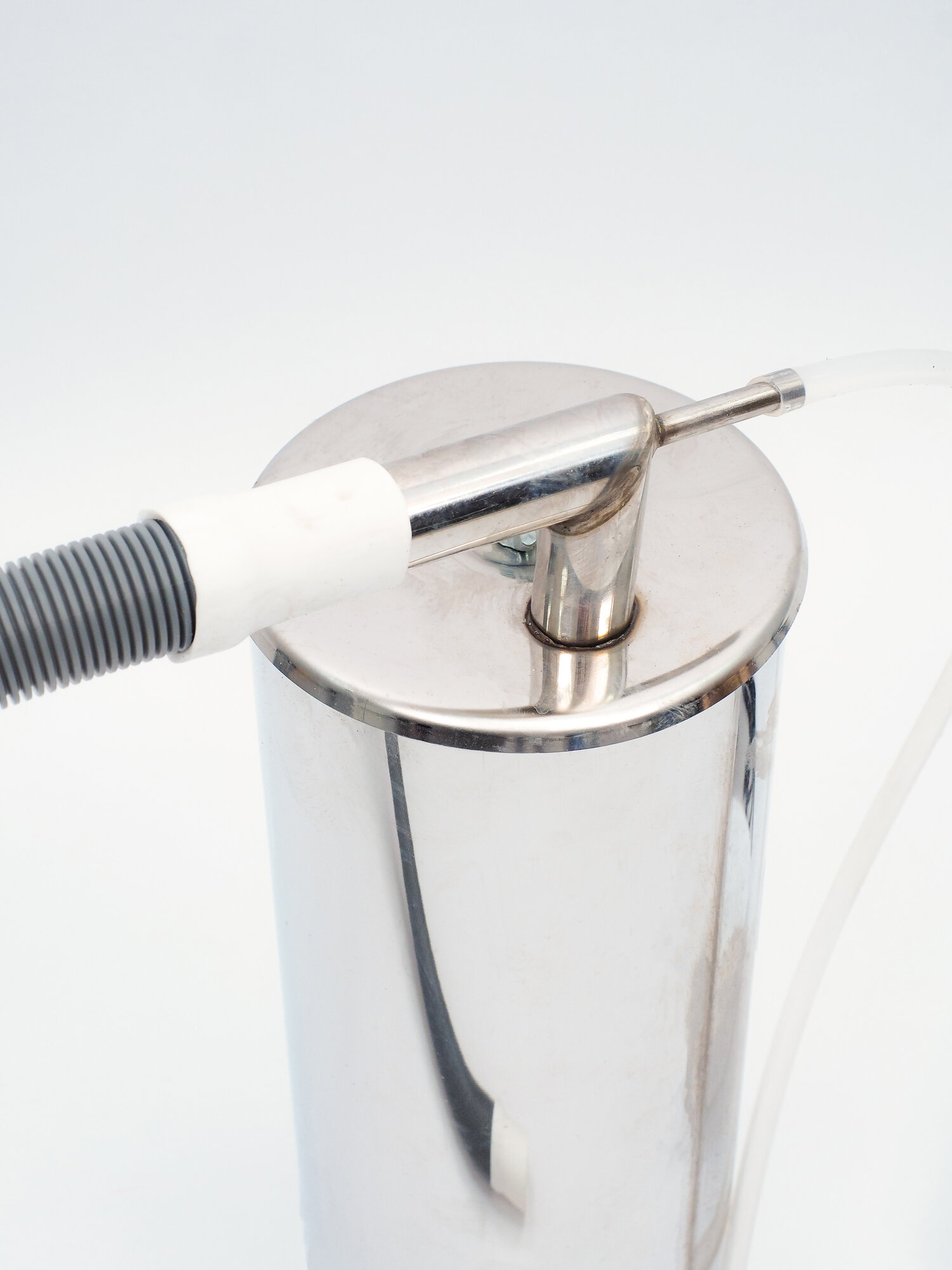 Донце колбы кривое. Шпилька крепления верхней крышки длинновата. Гофрошланг дубовый. |