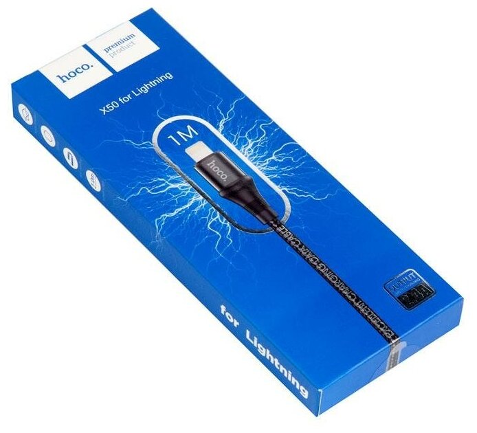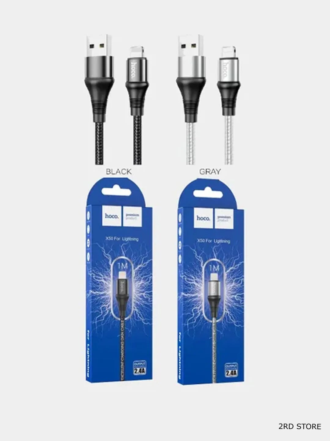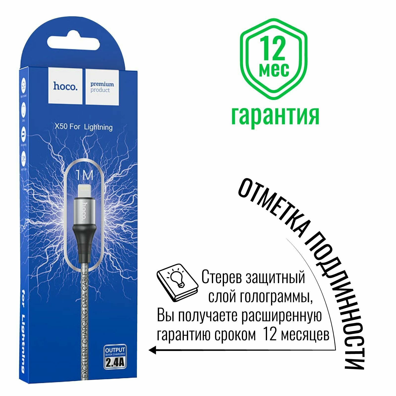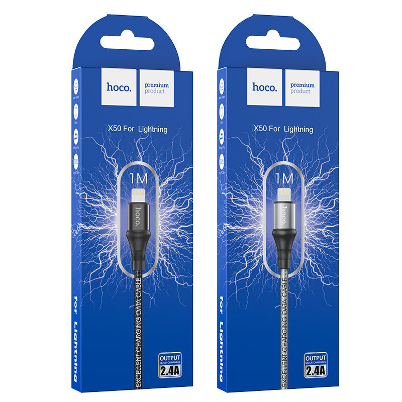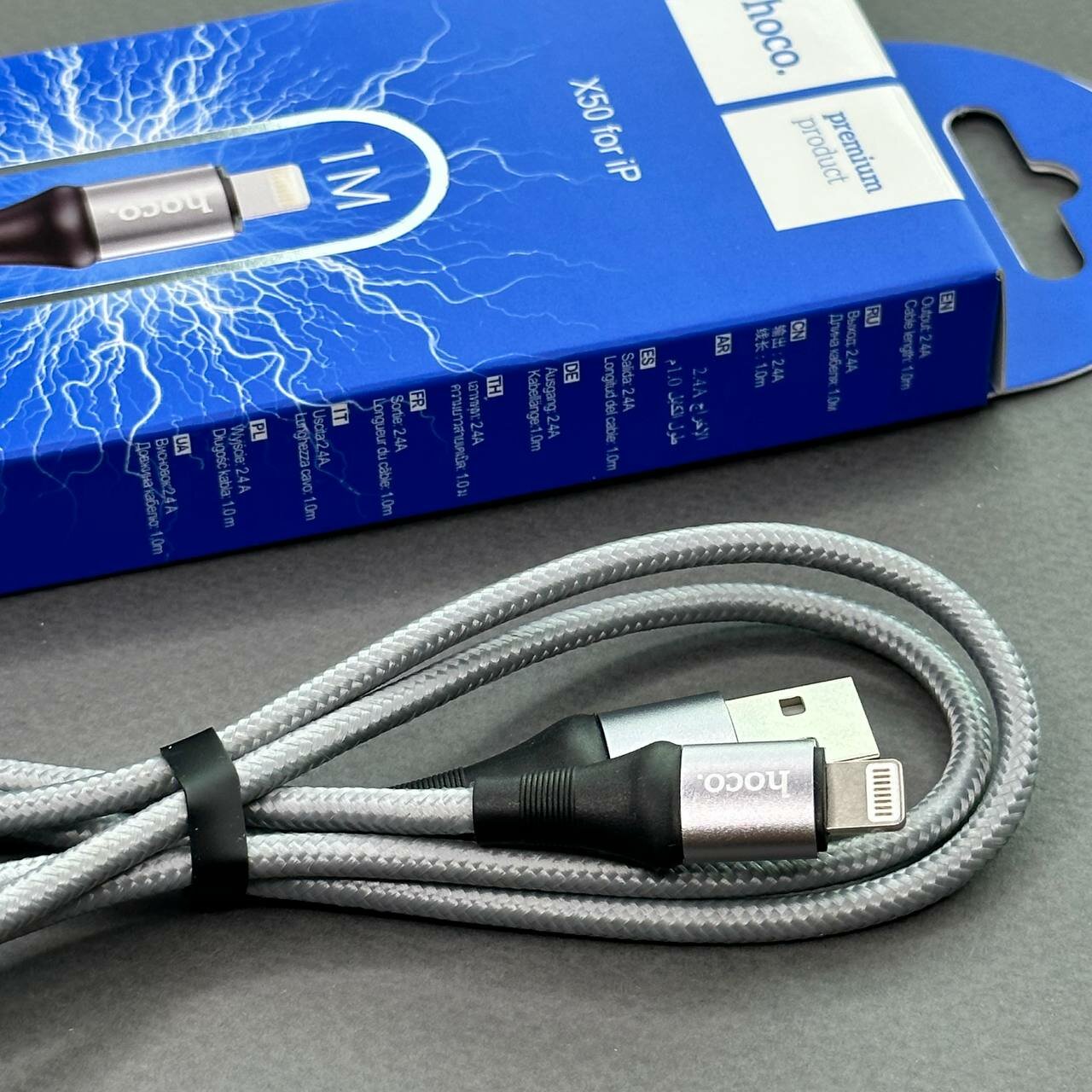 Кабель USB HOCO X50 Excellent для Lightning, 2.4А, длина 1.0м, серый