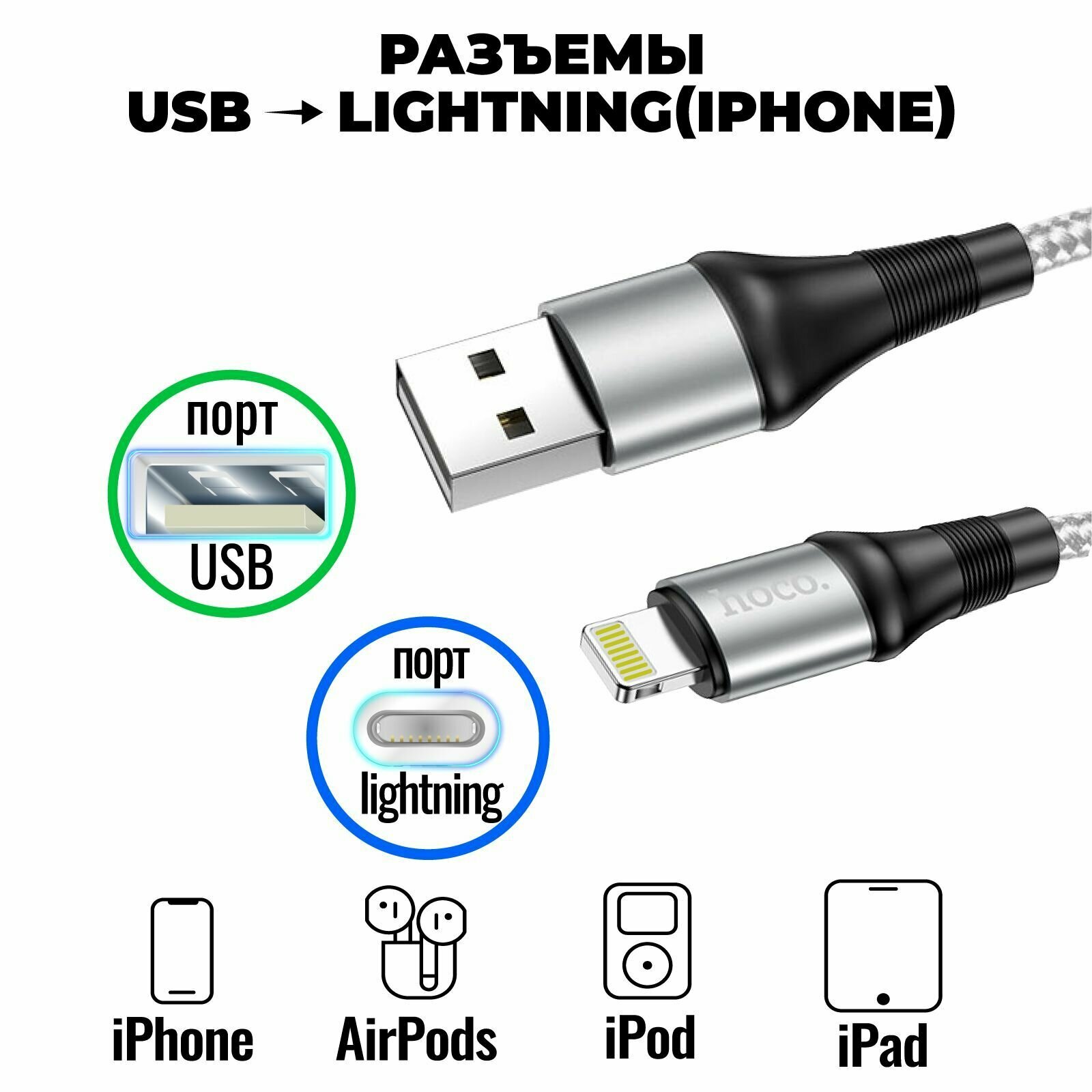 USB дата кабель Lightning HOCO X50 для быстрой зарядки Apple, iPhone, iPad, AirPods, кабель зарядка для айфон 1м, серый