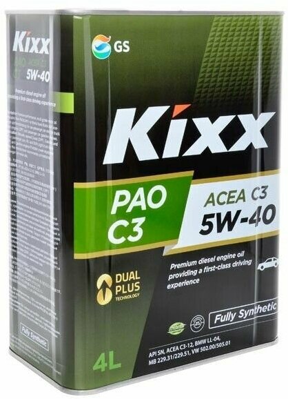 Синтетическое моторное масло Kixx PAO C3 5W-40, 4 л, 1 шт
