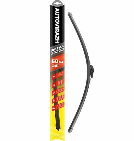 Щетка стеклоочистителя Autovirazh "AV-255", автомобильная, 24 дюйма, 600 мм, бескаркасная, AV-002417