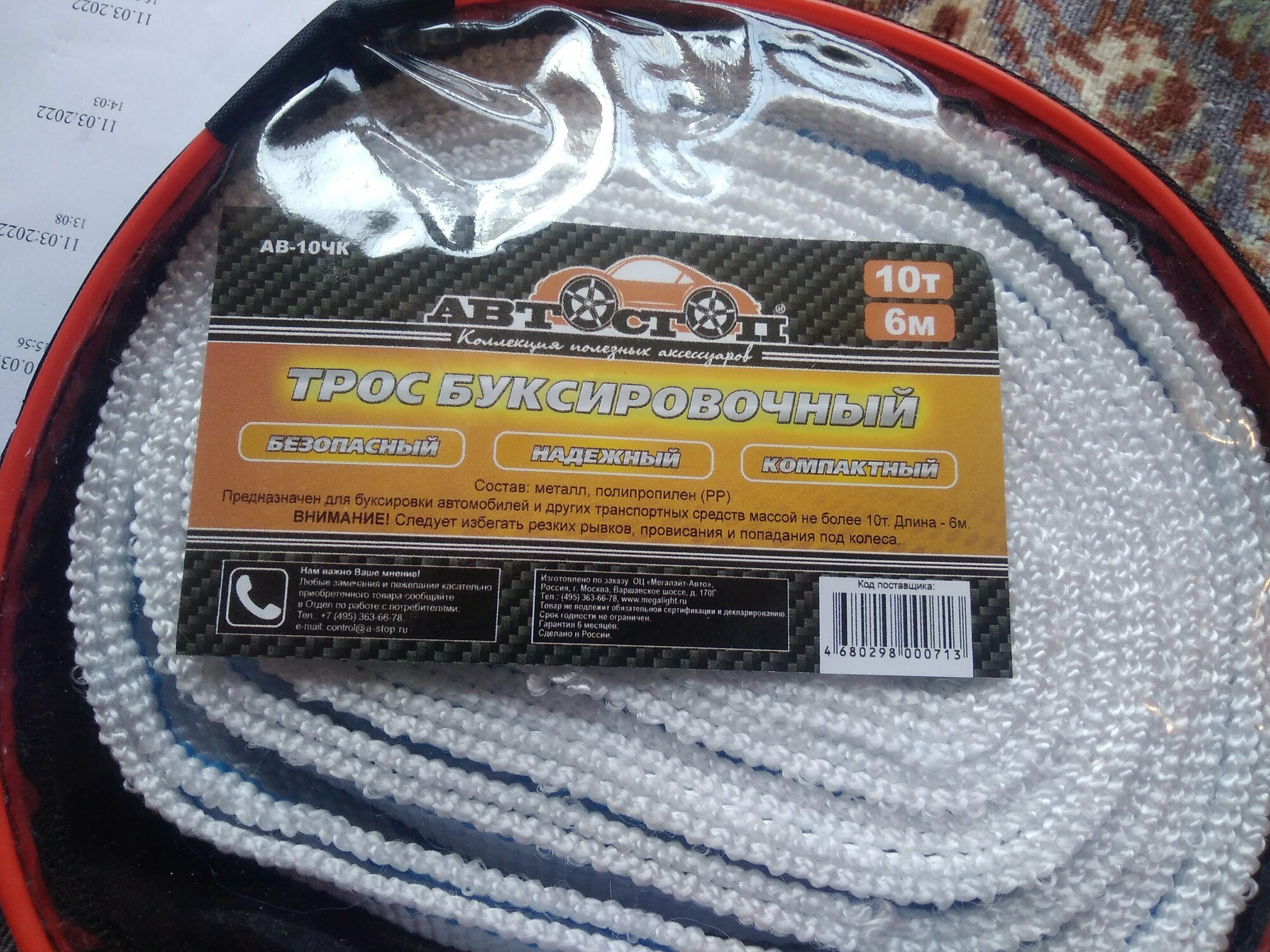Трос буксировочный AB-10ЧK 10000кг длина 6м, ленточный (с крюками) в чехле 115, автостоп AB10ЧK (1 шт.) интересное: