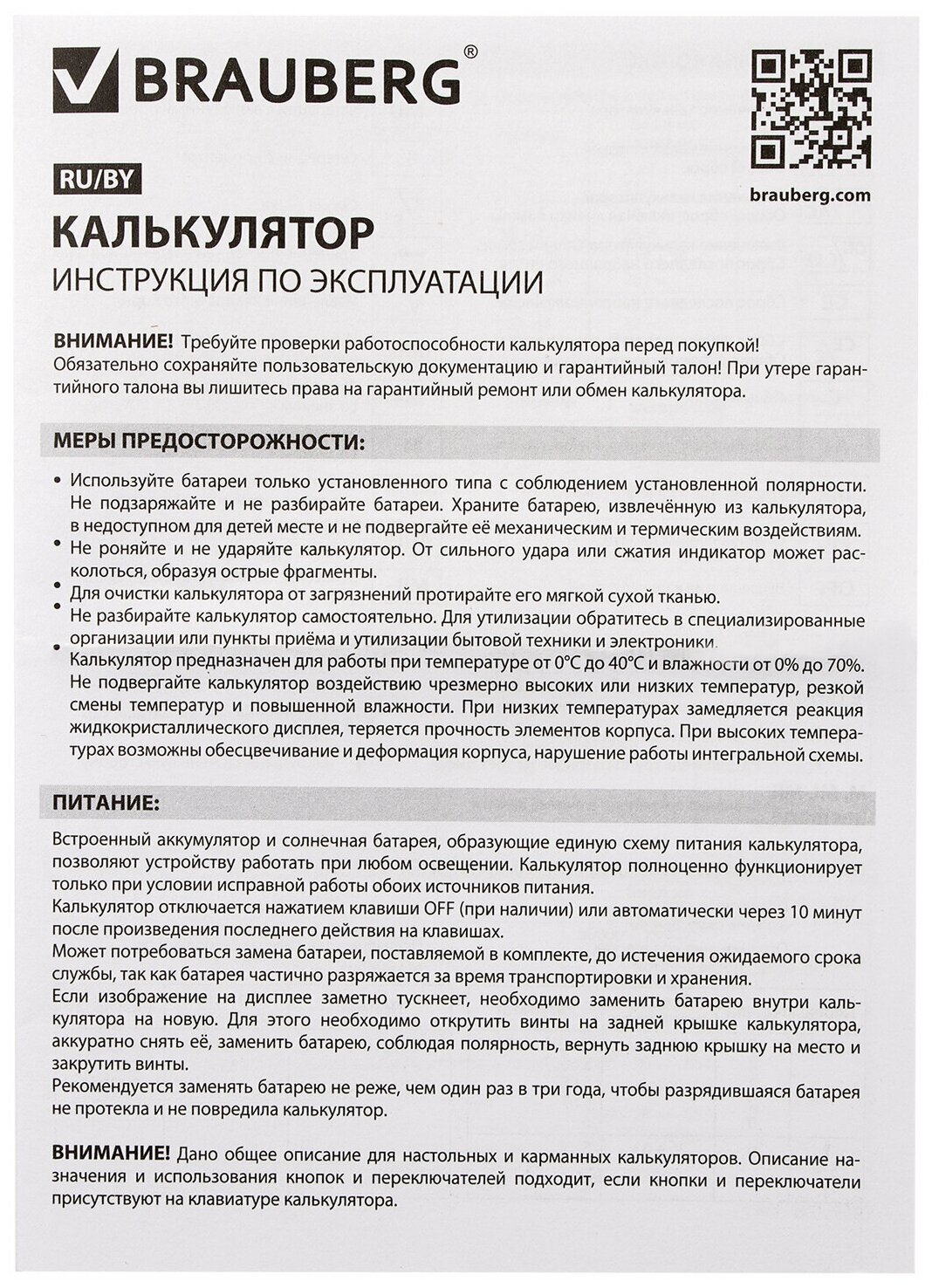 Калькулятор настольный BRAUBERG ULTRA-08-BU, компактный (154