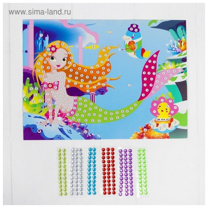 Купить --- Аппликация круглыми стразами "Русалочка и друзья"