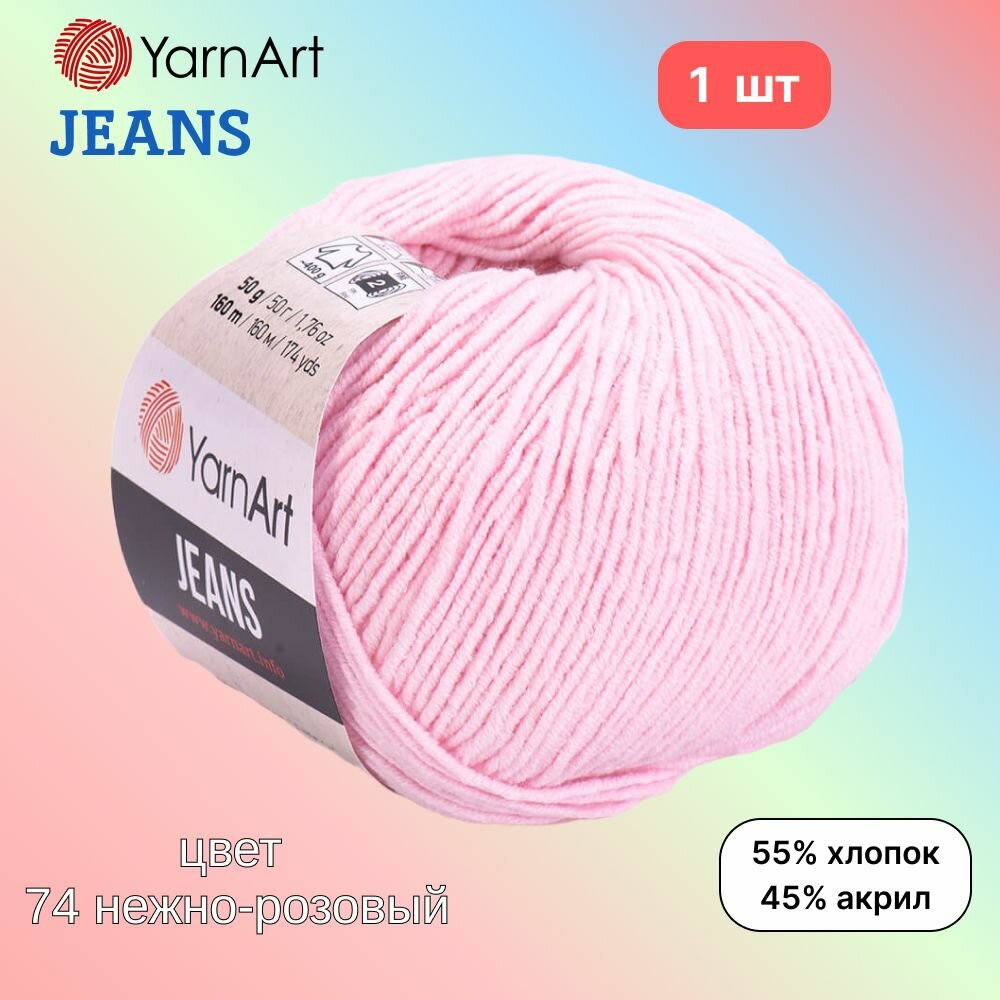 Купить Пряжа YarnArt Jeans светло-розовый (74), 55%хлопок/45%акрил, 160м, 50г, 1шт
