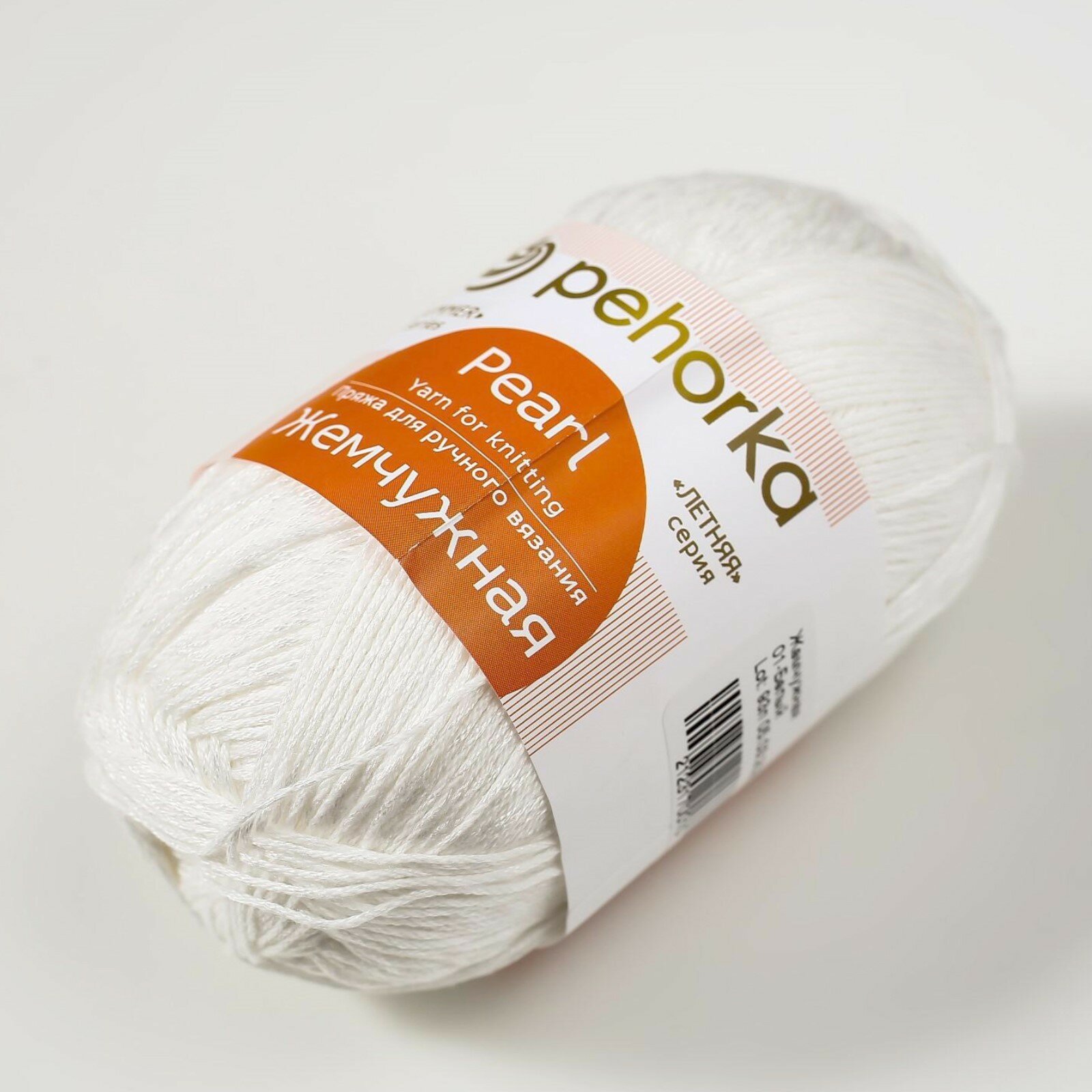 Купить Пряжа Пехорка Жемчужная белый (0001), 50%хлопок/50%вискоза, 425м, 100г, 1шт