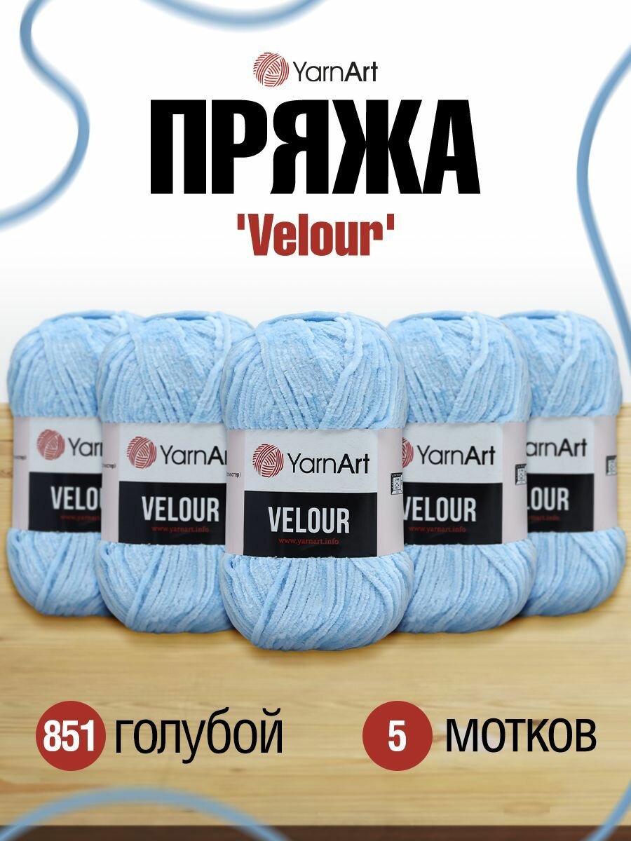 Пряжа для вязания YarnArt 'Velour', 100г, 170м (100% микрополиэстер) (851 голубой), 5 мотков