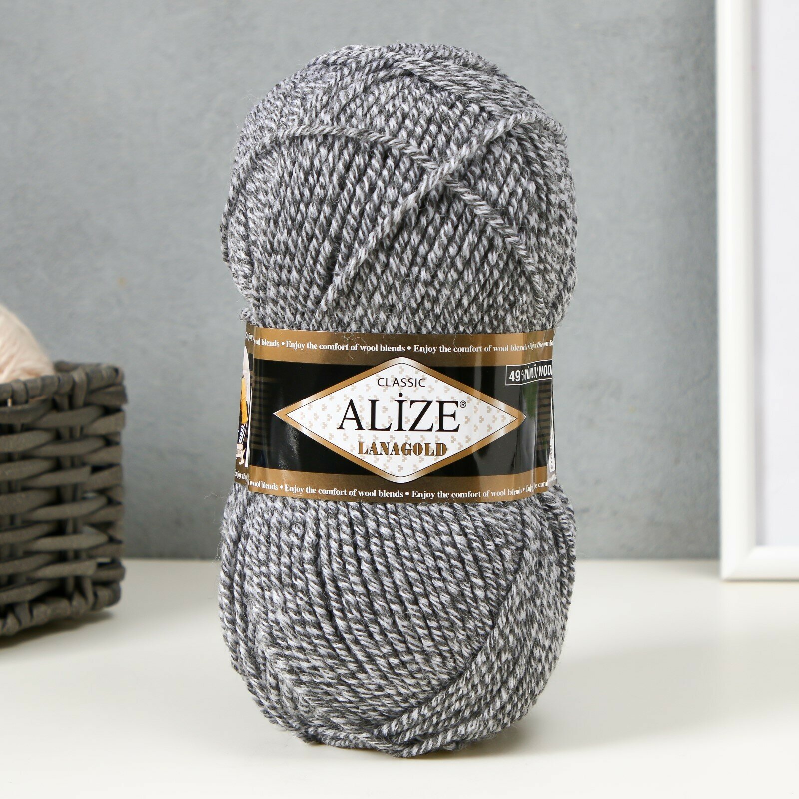 Пряжа Alize Lanagold (Ланаголд) цвет средне-серый меланж 182, 49% шерсть, 51% акрил 100г 240м 5шт