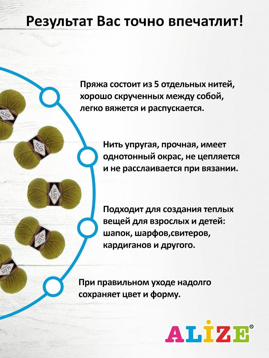 СохранитьПряжа Alize Lanagold (Ализе Ланаголд) - 5 мотков 758 оливковый 49% шерсть, 51% акрил 240м/100г интересное: