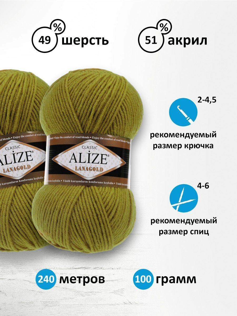 Пряжа для вязания ALIZE 'Lanagold', 100г, 240м (49% шерсть, 51% акрил) (758 оливковый), 5 мотков