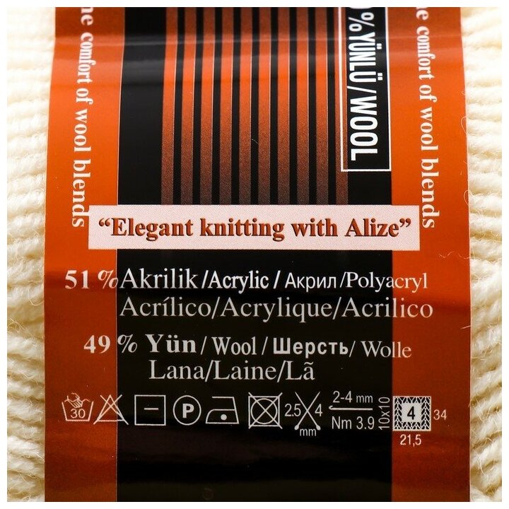 Пряжа Alize Lanagold (Ланаголд) - 1 моток Цвет: 62 молочный 49% шерсть, 51% акрил 100г 240м