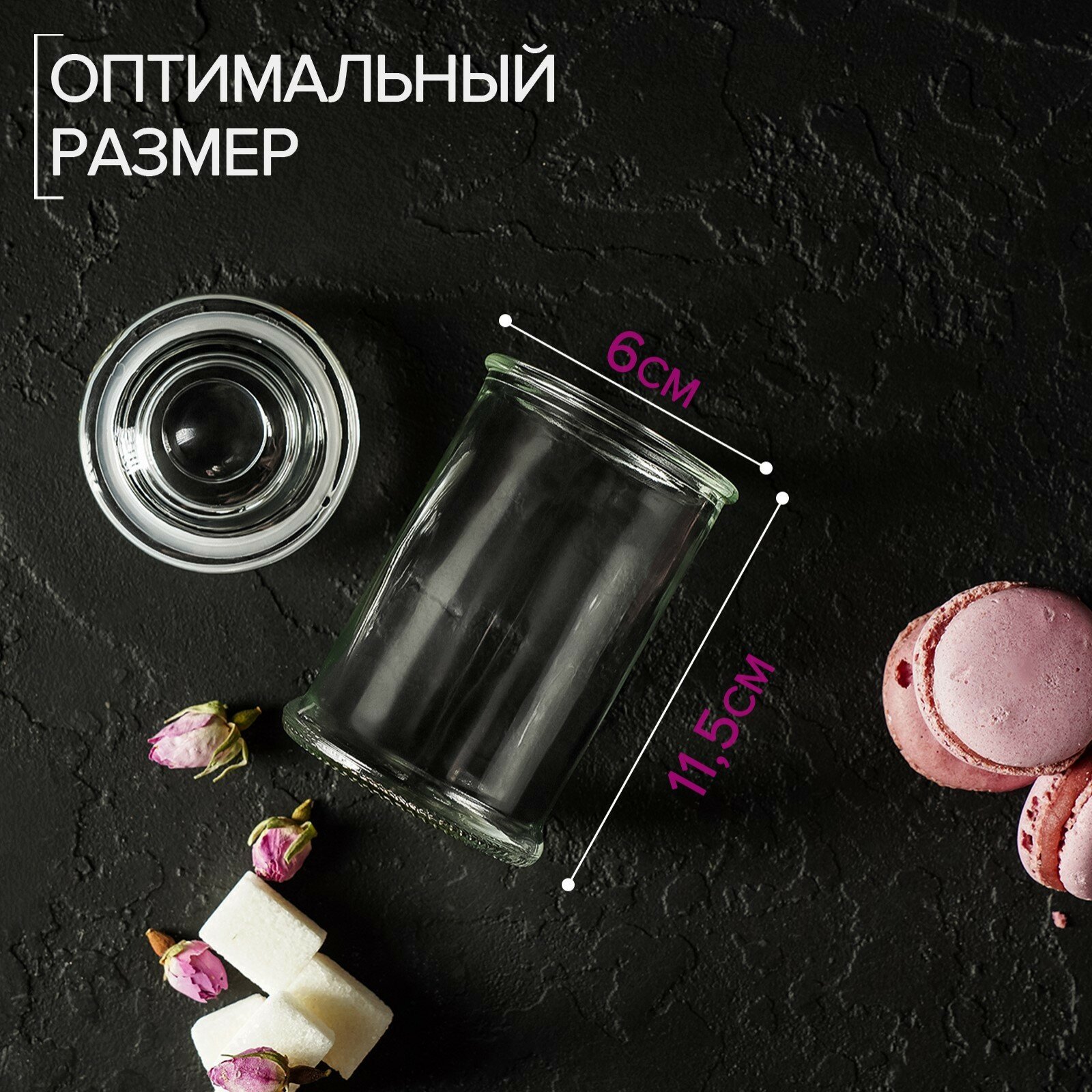 Банка стеклянная для сыпучих продуктов с металлической крышкой Доляна «Премиум», 350 мл, 10×8 см (арт. 114072)