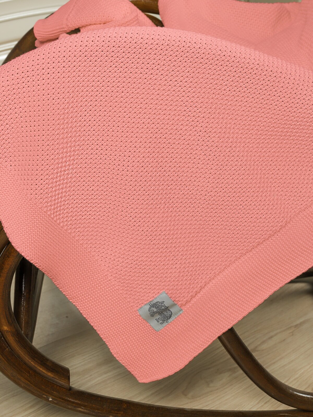 Купить Плед, вязаный, Warm Whiff, пудровый, 180х220, хлопок, покрывало для взрослого, сна, дивана, на кресло, большой, тонкий, натуральный, красивый, нежный, натуральный, гипоалергенный