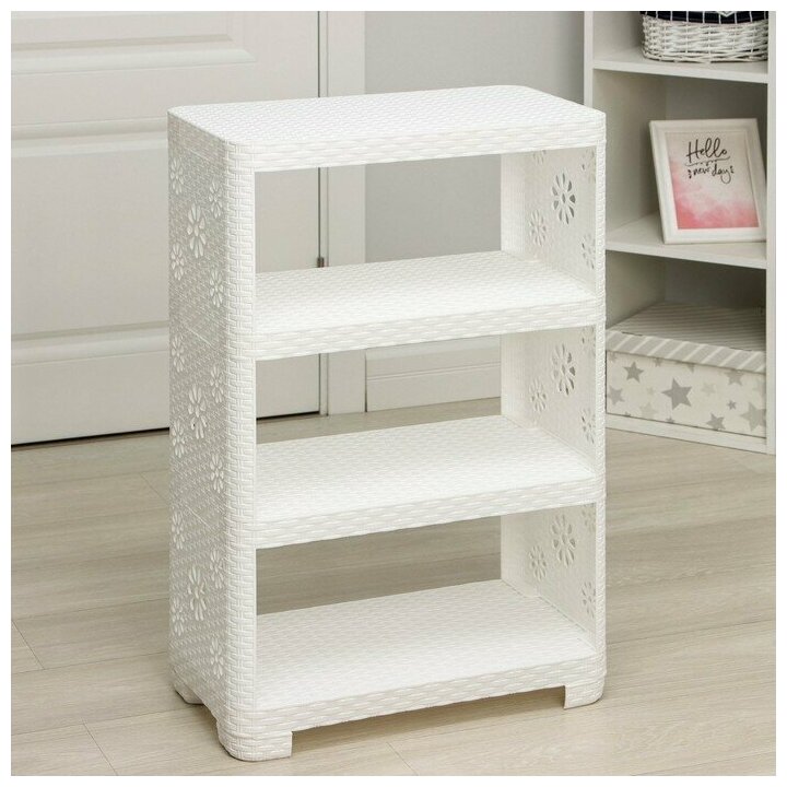 Купить Этажерка напольная 4-х секционная «Плетёнка» №2, цвет белый
