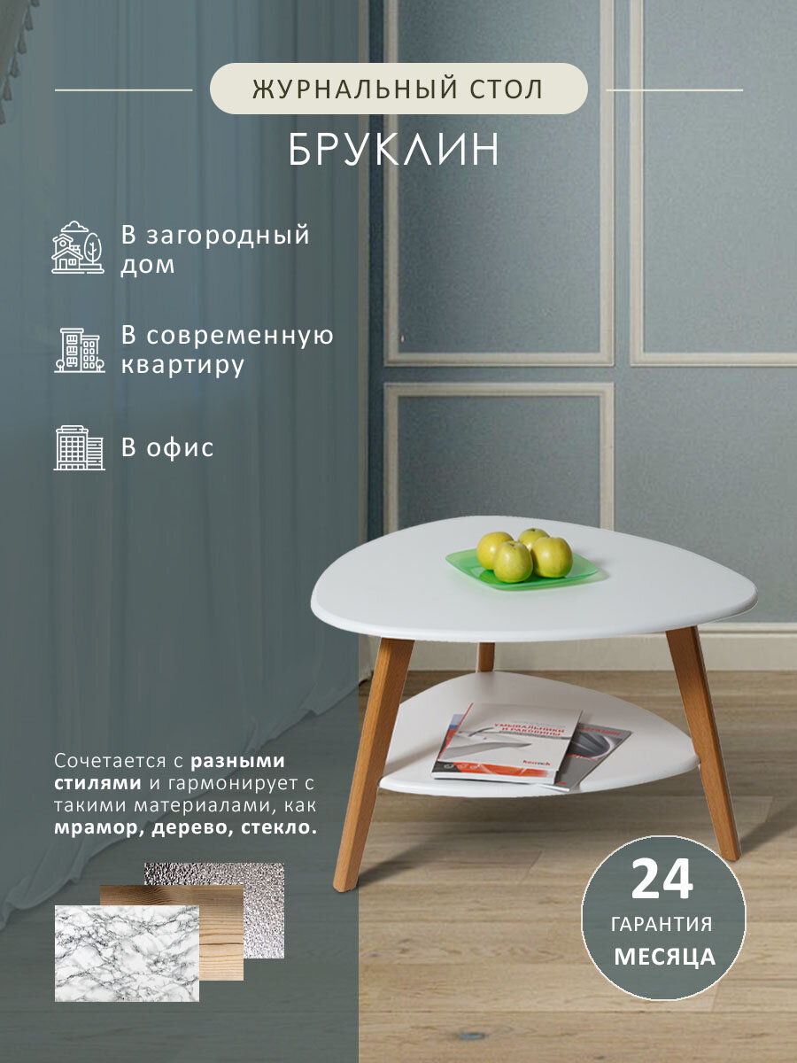 Стол журнальный "Бруклин" (белый/дуб светлый)