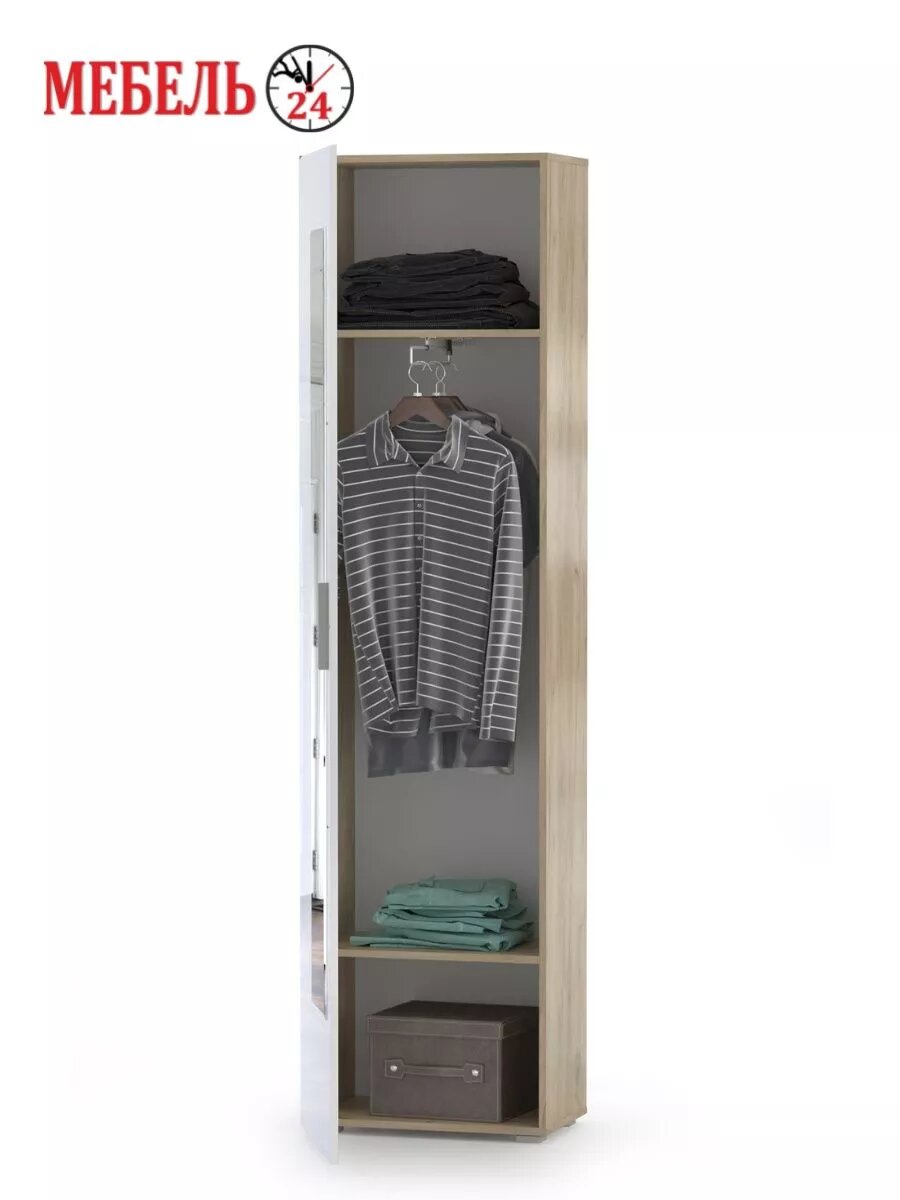 Шкаф для одежды Лайн 08.122, цвет дуб крафт серый/белый глянец, ШхГхВ 55х35х210 см., универсальная сборка интересное: