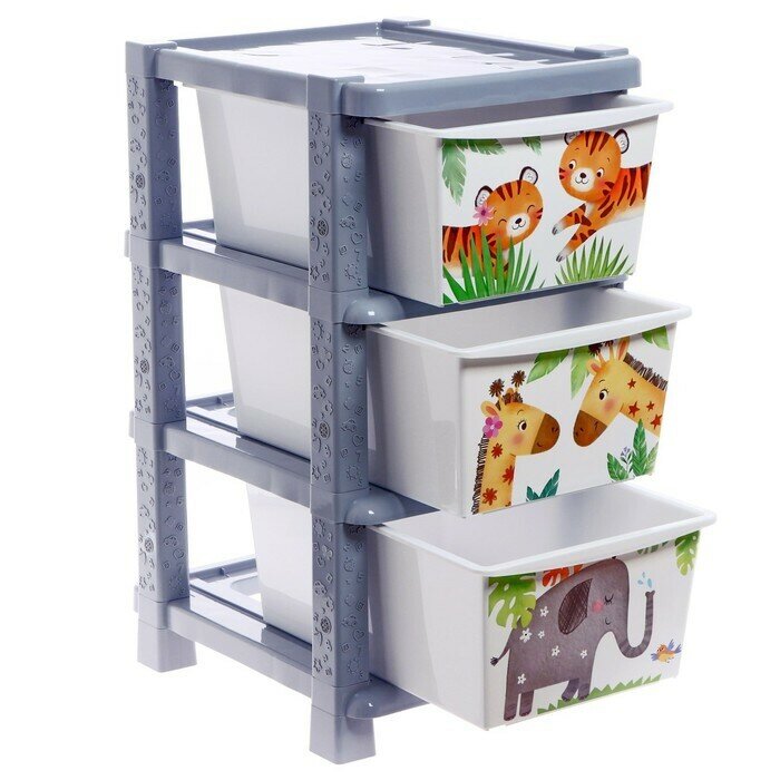 Комод детский пластмассовый "Счастливое детство" с ящиками для хранения игрушек, белья, вещей и разных мелочей, пластиковая мебель, 3 выдвижных секции