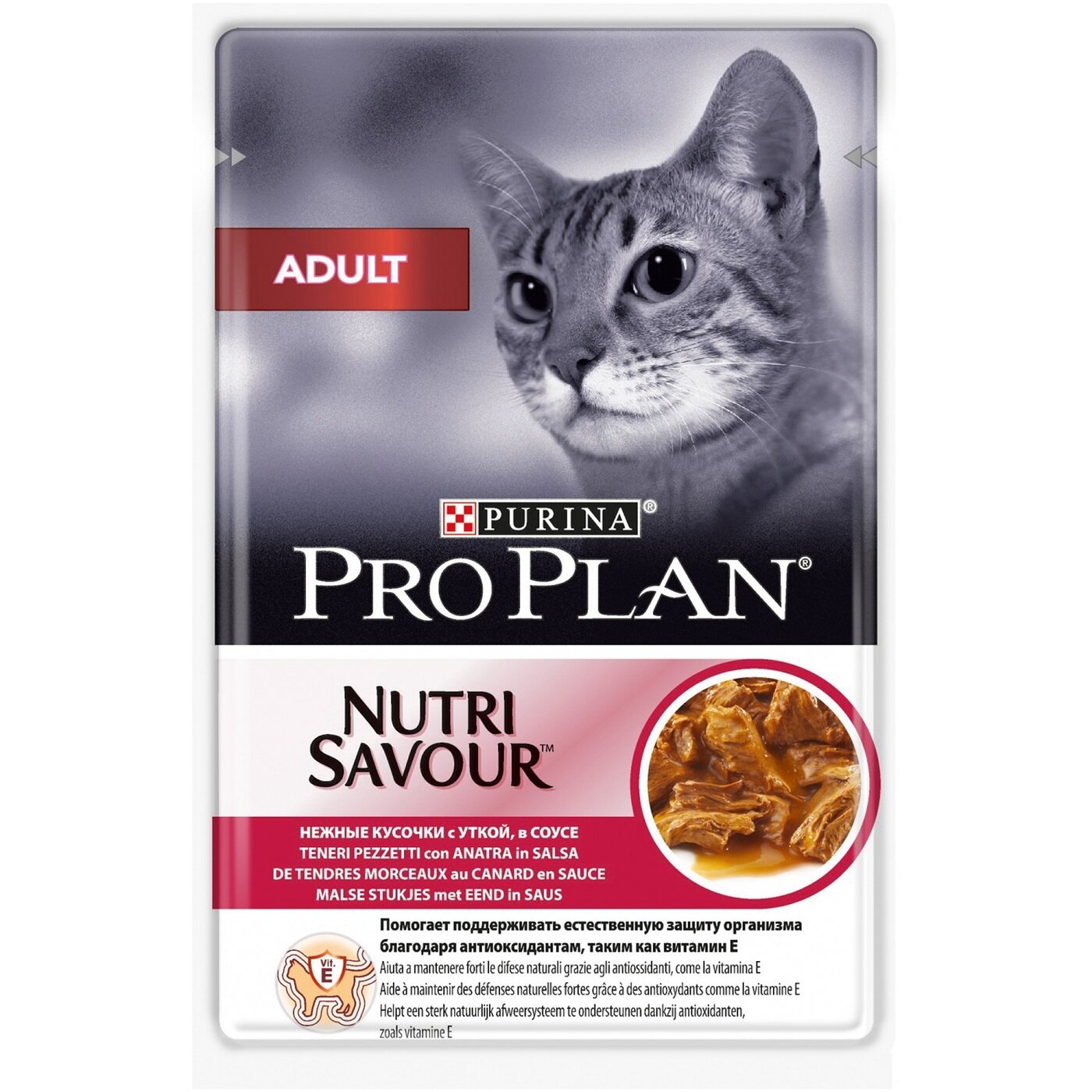 Влажный корм Pro Plan Adult Nutri Savour для взрослых кошек, нежные кусочки с уткой, в соусе, Пауч, 85 гр., 26 шт.