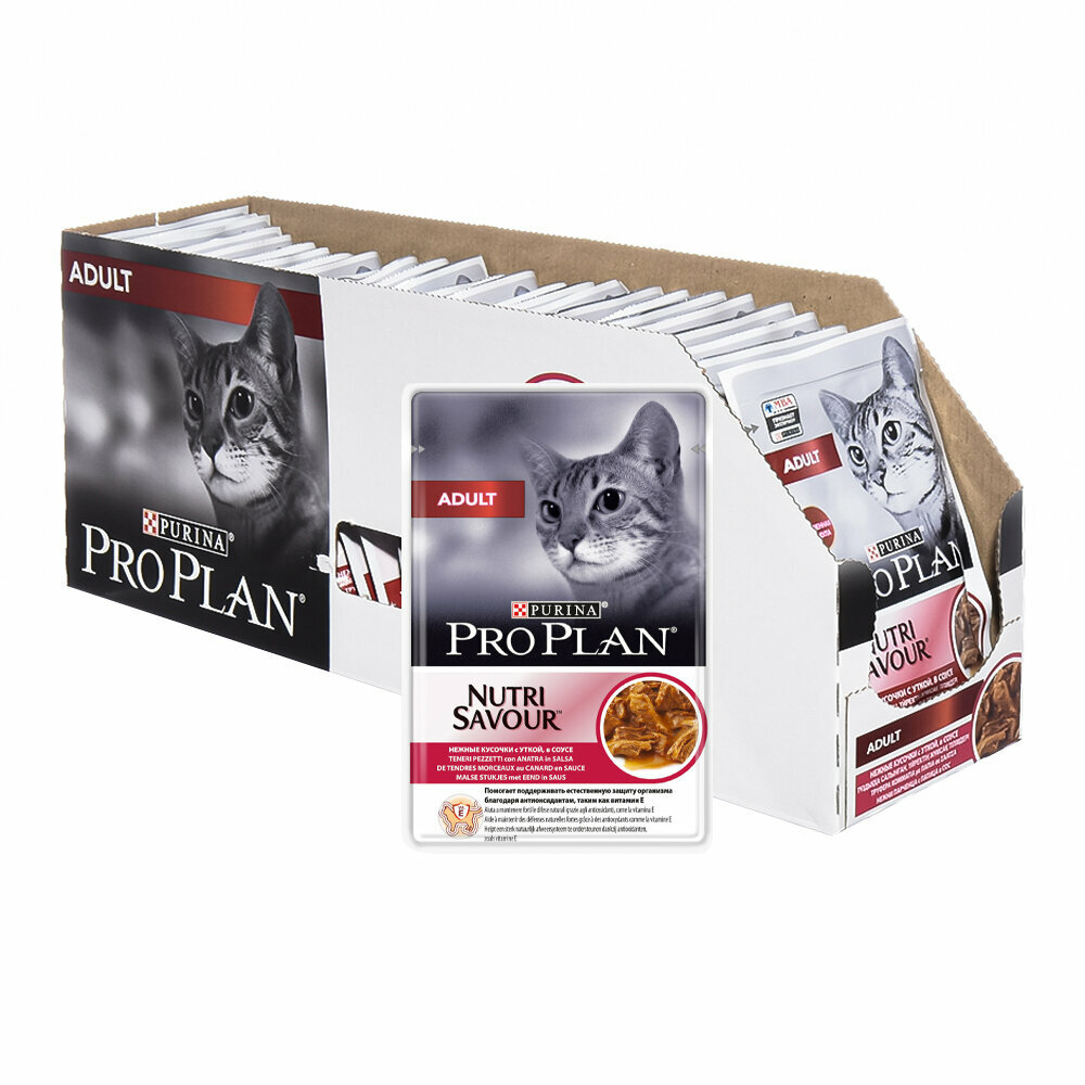 Влажный корм Pro Plan® Nutri Savour® для взрослых кошек, нежные кусочки с уткой, в соусе, 26 шт. по 85 г
