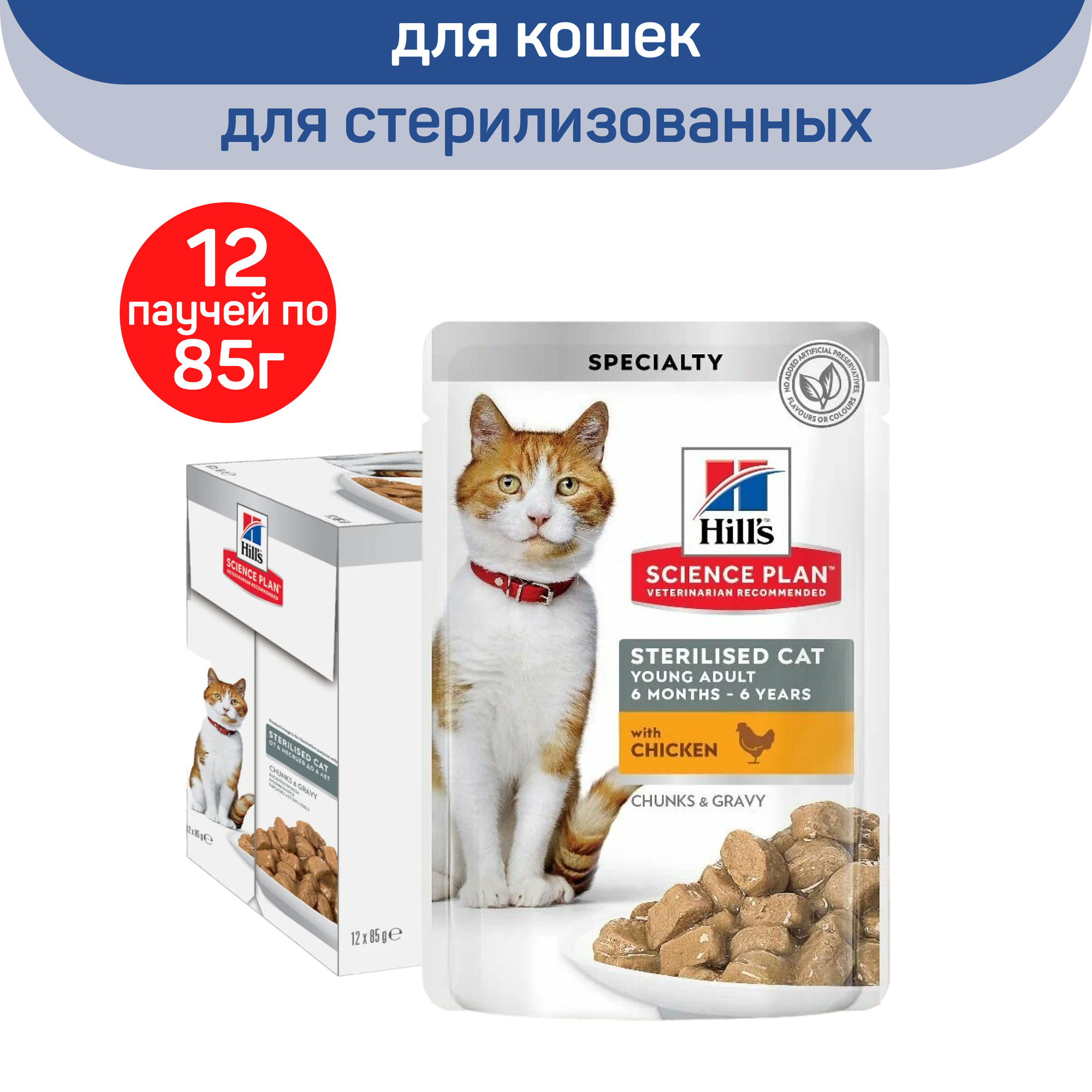Влажный корм Hill's Science Plan для молодых стерилизованных кошек и кастрированных котов, пауч с курицей в соусе, 85 г*12 шт