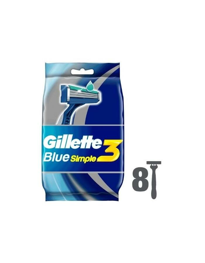 Gillette Одноразовые Мужские Бритвы Blue3 Simple, с 3 лезвиями, 8, фиксированная головка