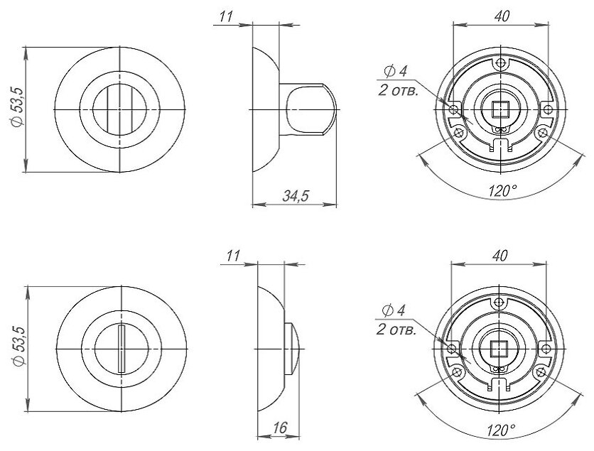 Ручка дверная межкомнатная медь с защелкой и заверткой без ключей комплект