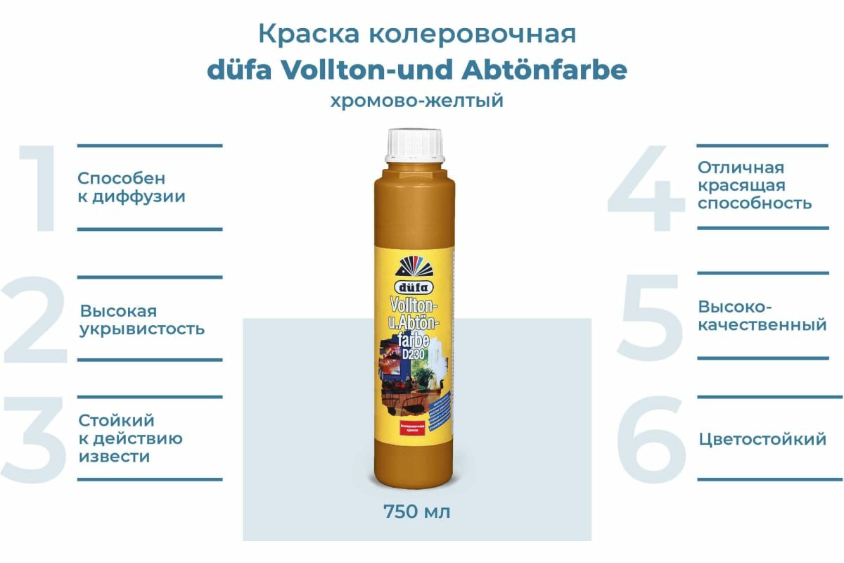 Краска Колеровочная Dufa Vollton und Abtonfarbe D230 750 мл 110 Охра, Водно-Дисперсионная / Дюфа.