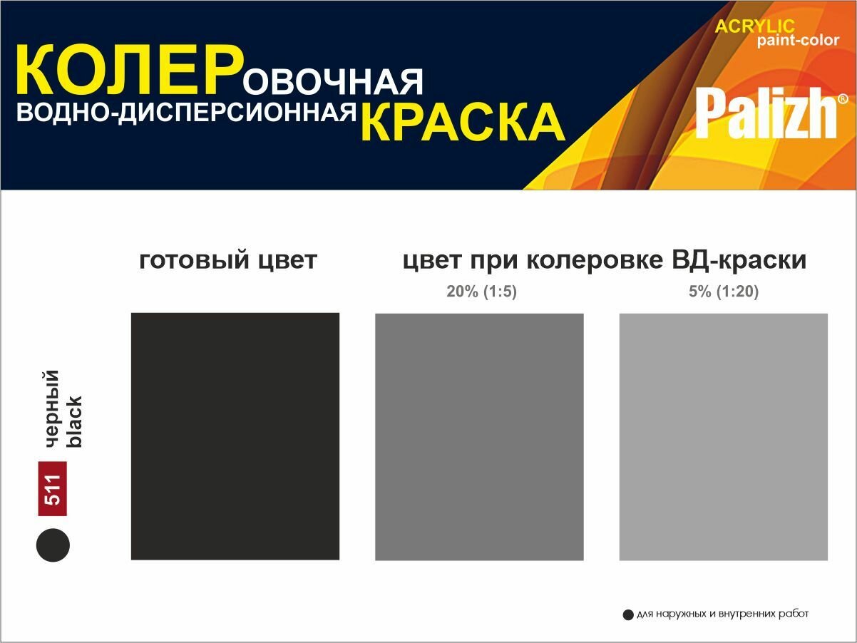 Колеровочная краска Palizh водно-дисперсионная, 511 черный, 0.75 л