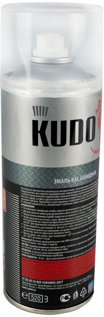 Кудо KU-09005 эмаль аэрозольная RAL9005 реактивный черный (0,52л) / KUDO KU-09005 эмаль аэрозольная алкидная RAL 9005 реактивный черный (0,52л)