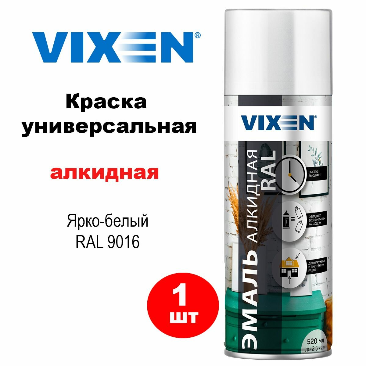 VIXEN VX19016 Эмаль универсальная RAL, яркобелый (RAL 9016), аэрозоль 520 мл VIXEN VX19016
