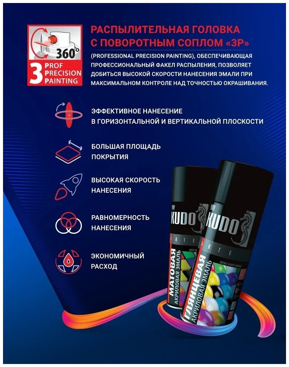 Эмаль аэрозольная Kudo Arte голубая глянцевая RAL 5012 520 мл