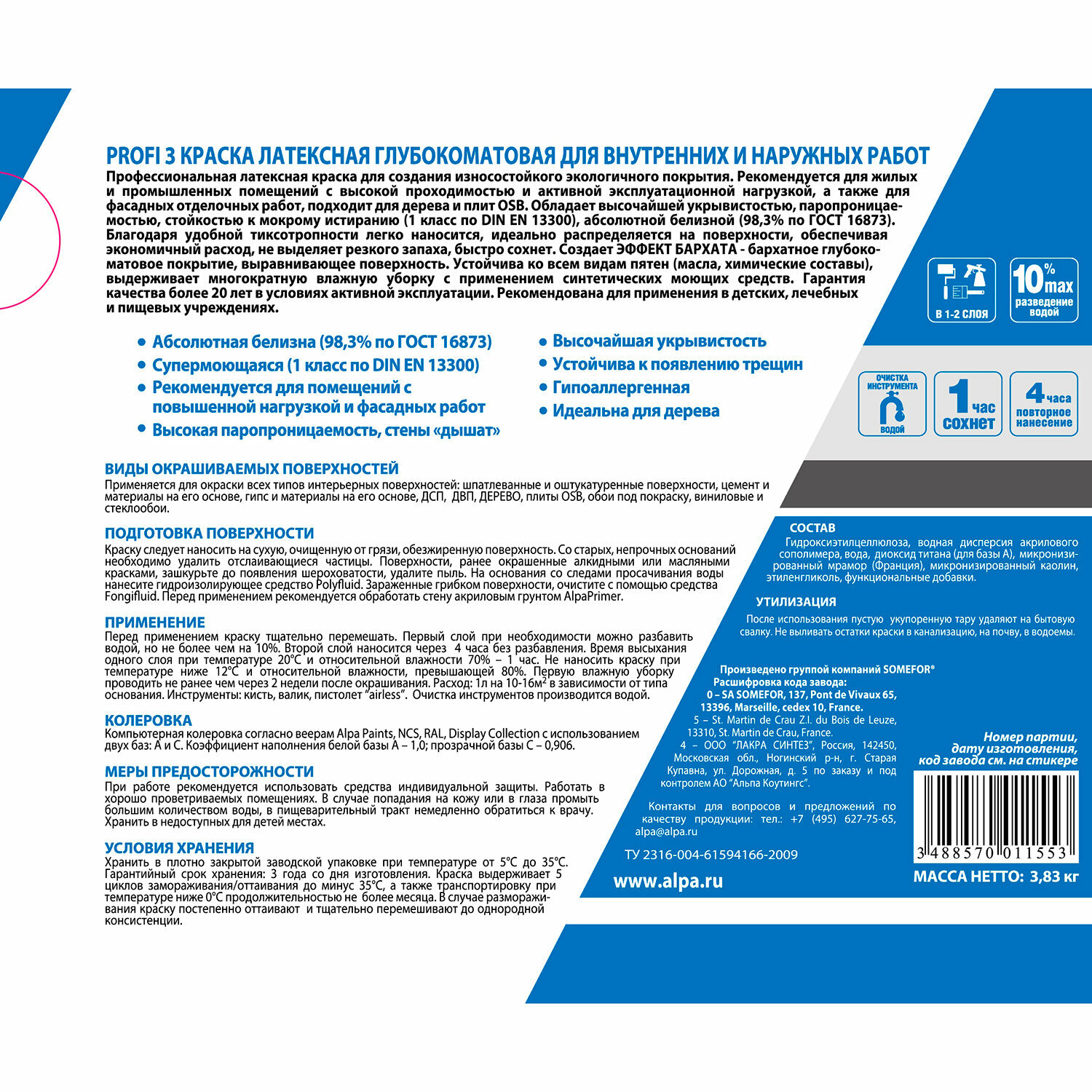 Ниже Вы можете прочитать отзывы на Краска моющаяся латексная Alpa Profi 3 белая 2,5 л, ознакомится с подробными характеристиками, посмотреть интересные обзоры и фотографии на Краска моющаяся латексная Alpa Profi 3 белая 2,5 л.